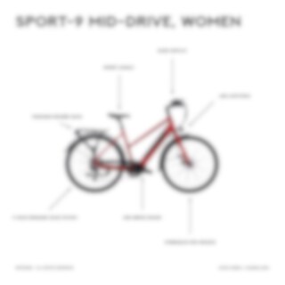 Litiumakun kapasiteetti on 432 Wh tai 504 Wh. On mahdollista ladata akku sen ollessa paikallaan tai poistaa akku ja ladata muualla. Sport-9 Mid-Drivessa on nyt entistäkin tehokkaampi 3A-laturi, jonka ansiosta akku latautuu jopa 50 % aiempaa nopeammin.